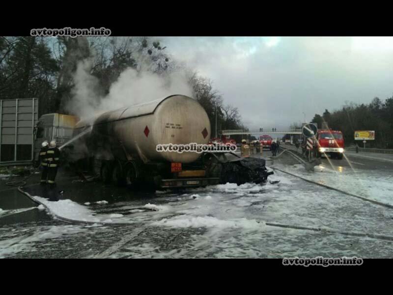 На Житомирьскій трасі внаслідок тарану 5-ти машин спалахнув бензовоз. Є поранені. ВІДЕО 07:51 03.12.2013