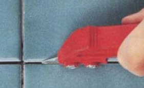 В новой линии и эпицентре продается специальная штучка для зачистки швов плитки. Стоит копейки.