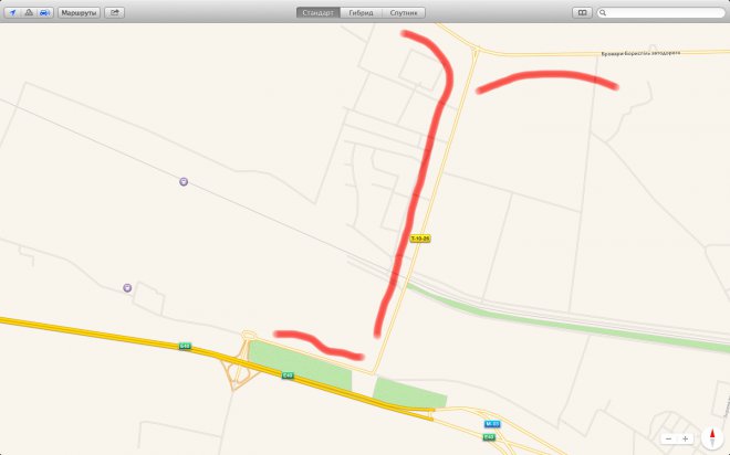 Нееееее, гора направо идет, а вам надо между бориспольской трассой и поворотом на гору втиснуться - таким образом заедете на мост дальше через мост и с круга сразу направо уходите потом дорога влево уйдет - потом жд переезд потом по прямой до Т-образного ну и там уже куда надо. Красным типа маршрут движения