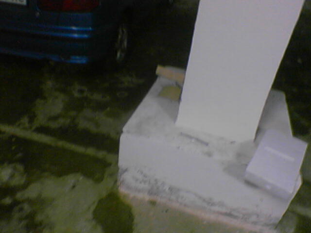 Вчера решил оставить машину на ночь в подземном паркинге, благо, цена 5 гривен - точно такая же как на моей открытой стоянке. Лучше бы не делал.. Спустился вниз, подъехал к месту и в результате получил сдертую краску на задней правой двери чуть пониже молдинга.. Вот интересно, это все подземные паркинги стоят на таких, мягко говоря, "дружелюбных" опорах, состоящих из двух частей (см картинку)?