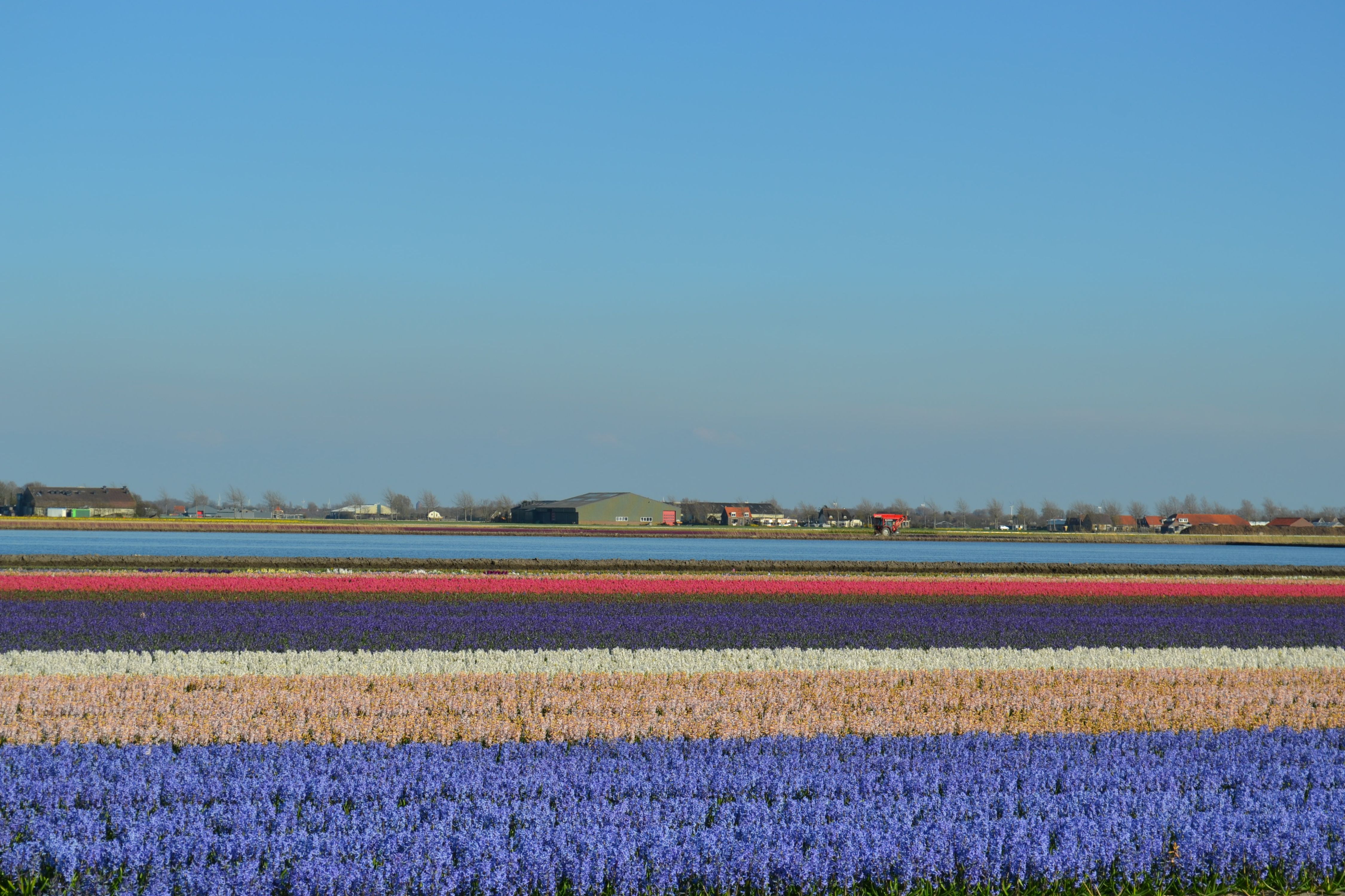 Насладившись цветочными скульптурами, стоит проехаться по Голландии и лицезреть цветение гиацинтов и тюльпанов, которые лоскутным покрывалом распростерлись на огромные территории.