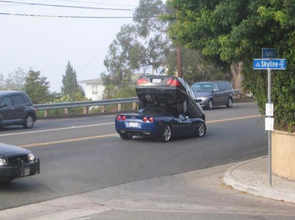 надпись "skyline" на знаке (фото 2) наверное разозлила водителя корвета