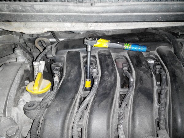 Отже, їду собі в неділю увечері, на ходу різко пропадає тяга, зменшую швидіксть, на оборотах близьких до холостих явно відчувається сильна вібрація. Ок, не зупиняємось, їду до найближчої заправки (яка використовується у якості освітленого майданчика), знімаю пластикову декоративну кришку, що закриває двигун, відключаю провода (на заведеному двигуні) від котушок, з першого разу вгадую, який з циліндрів не працює (хто не знає — якщо „заглохне“, значить цей циліндр працював, треба підключити провода назад, завести і спробувати на іншому, до знаходження циліндру, при відключанні проводів від якого нічого не зміниться).
