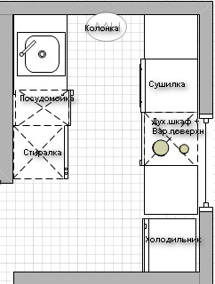 Помогите, пожалуйста, решить сложнейшую топографическую задачу - вписать посудомойку в малогабаритную кухню. Есть кухня, куда надо поставить посудомойку (ПММ), примерно такой конфигурации (ну не чертежник я! ) (см. картинку).