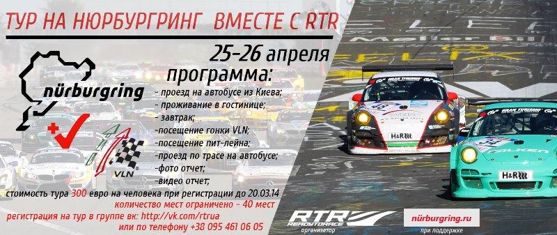 И так, любители гонок, и просто желающие посетить легендарный трек всех времен и эпох – Нюрбургринг! У меня для Вас хорошая новость, мы открываем регистрацию на поездку на Нюрбургринг и не просто , а на очень зрелищную гонку – VLN Langstreckenmeisterschaft Nürburgring — это немецкий национальный чемпионат по кольцевым гонкам, который проходит в 10 этапов на гоночной трассе Нюрбургринг Нордшляйфе и GP-курсе, мы собираемся посетить один из этапов 25-26 апреля.