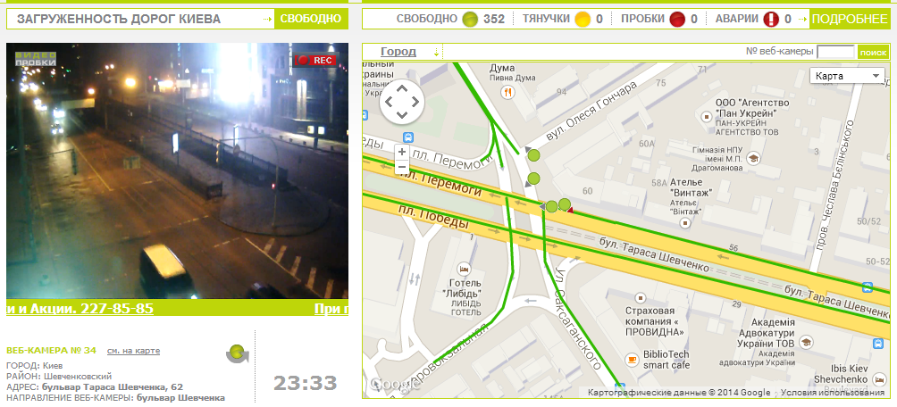 Только что на видеопробках смотрел - по Шевченко в районе пересечения с Саксаганского транспорт двигается