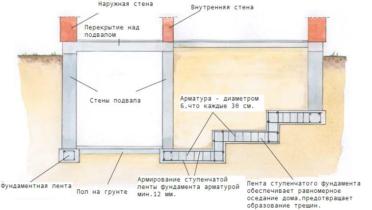 Думаю разместить объявление на работник.киев.уа с предложением по строительству такого фундамента. Общий вид на рисунке. Размеры 4х6м, перемычка параллельно длинной стене. Ширина 0.4м. Объем подземной и наземной частей получается по около 8.7 куба. Я так понимаю, технология следующая: - разметка; - копка траншей; - обустройство опалубки, в т.ч. для лаза в подвал, вентиляции и вывод канализации; - укладка и вязание арматуры; - заливка бетоном, уплотнение; - после высыхания разборка опалубки и выборка грунта в области подвала;
