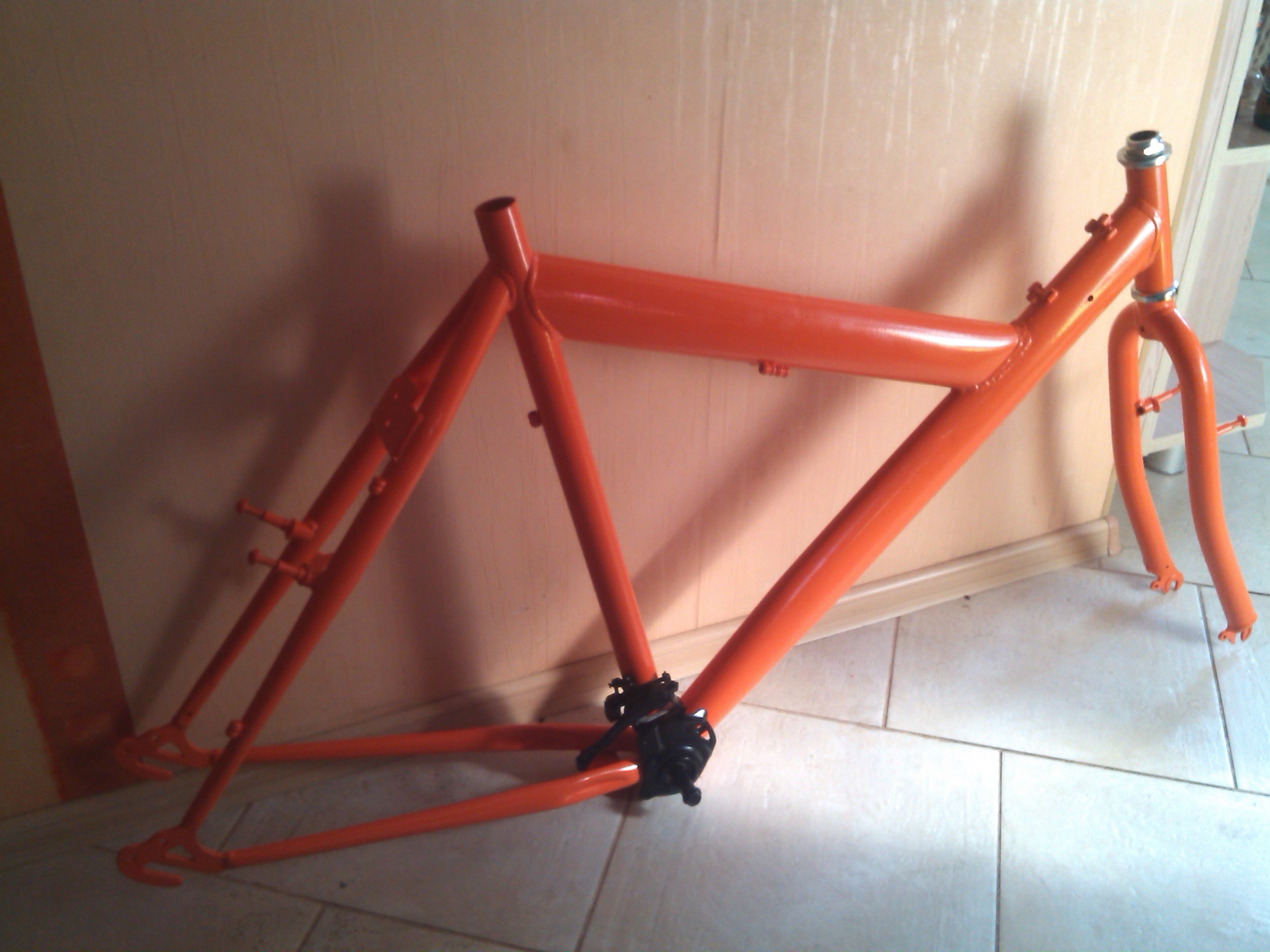 Раму заварил, попескоструил и отдал на порошковую покраску. Так же попесочил шатуны, педали и переднюю перекидку и покрасил.