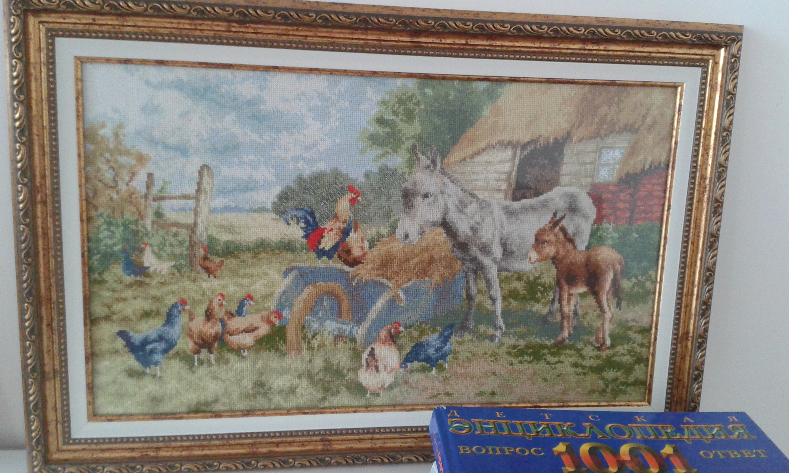 Респект за усидчивость. Но в целом (говорю, как человек, который умеет вышивать и в прошлом развлекался оным действием) творчества в процессе вышивки по готовым схемам с расписанными номерами ниток ни грамма нет. Просто способ убить время.