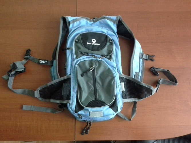 Продам велорюкзак новый, объем 15L, цвет голубой, производства Китай. Качество хорошее, много отделений с молниями, трансформируется по глубине, есть отделение для питьевой системы, сетка для крепления шлема.