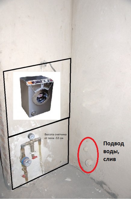 На правій стіні ще вивід холодної води і злив. Тож лишається варіант конструкції.