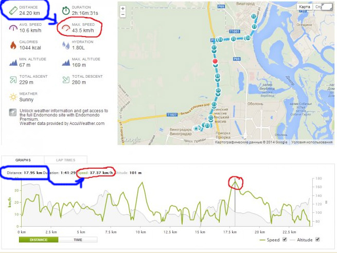 Тю, так это на 17,95 километре у меня была скорость 37,37км/ч, а на графике показана вся дистанция.