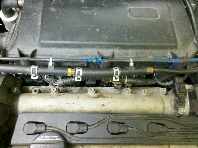 Снимали топливную рампу и под ней врезались в коллектор под таким же углом, что и бензофорсунки