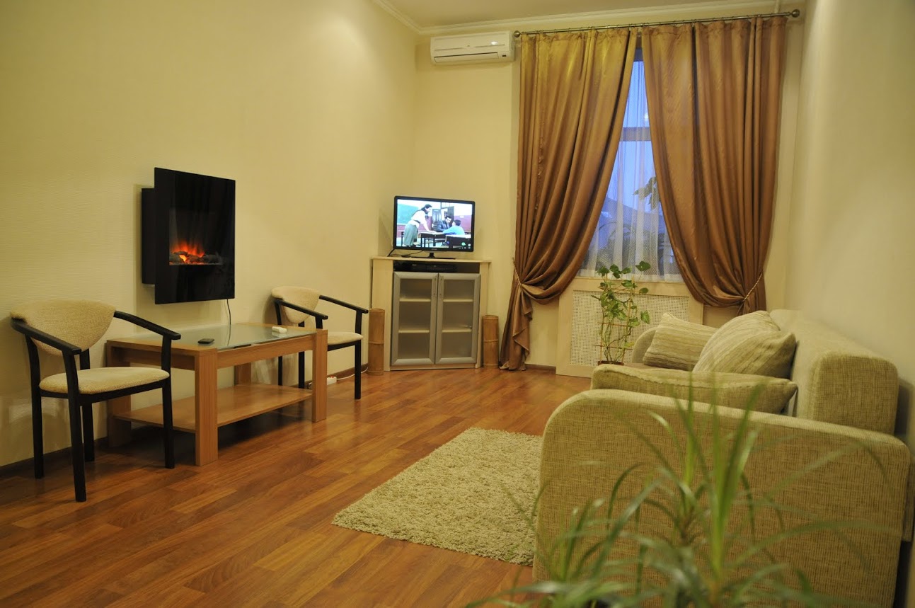 60 кв. м., 2 комнаты, 4й из 5-этажного дома, лифт, двуспальная кровать, двуспальный диван, санузел раздельный, окна во двор (фото ниже), квартира тихая, потолоки высокие, открытый большой видовой балкон. Техника: стиральная машина, утюг, два кондиционера, видеодомофон, подностью оснащённая кухня, микроволновка, сейф, Wi-fi, кабельное TV.