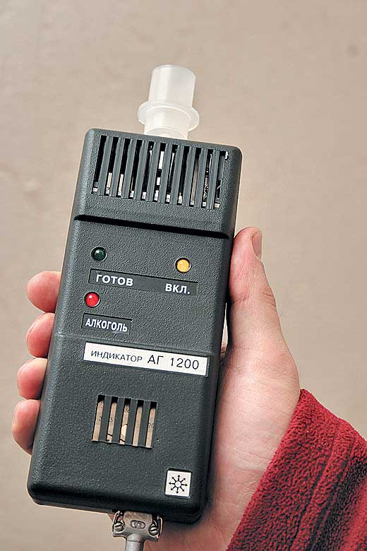 Элементарно. "Заряженный" спиртом/водкой мундштук одевается ПОСЛЕ включения/самотестирования.