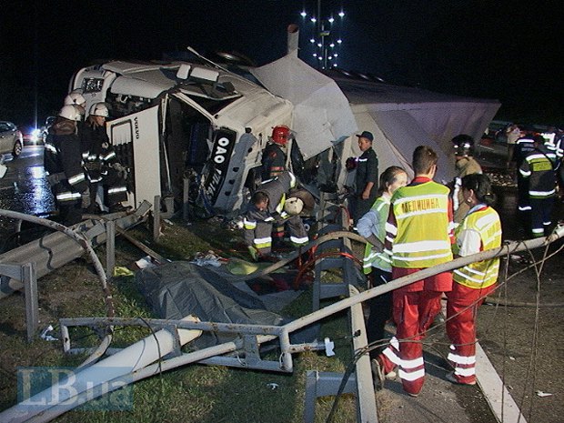 Оп-па, так она еще с ночи лежит. Утром, в начала 8 ехал, то еще лежала, оторванный топливный бак, немного ранее, и куча разлитой соляры. Кабина очень сильно раскурочена((( На проезжей части, в сторону Борисполя, стояли пожарные((( Больше никаких ТС небыло. Мож уснул за рулем водитель.....