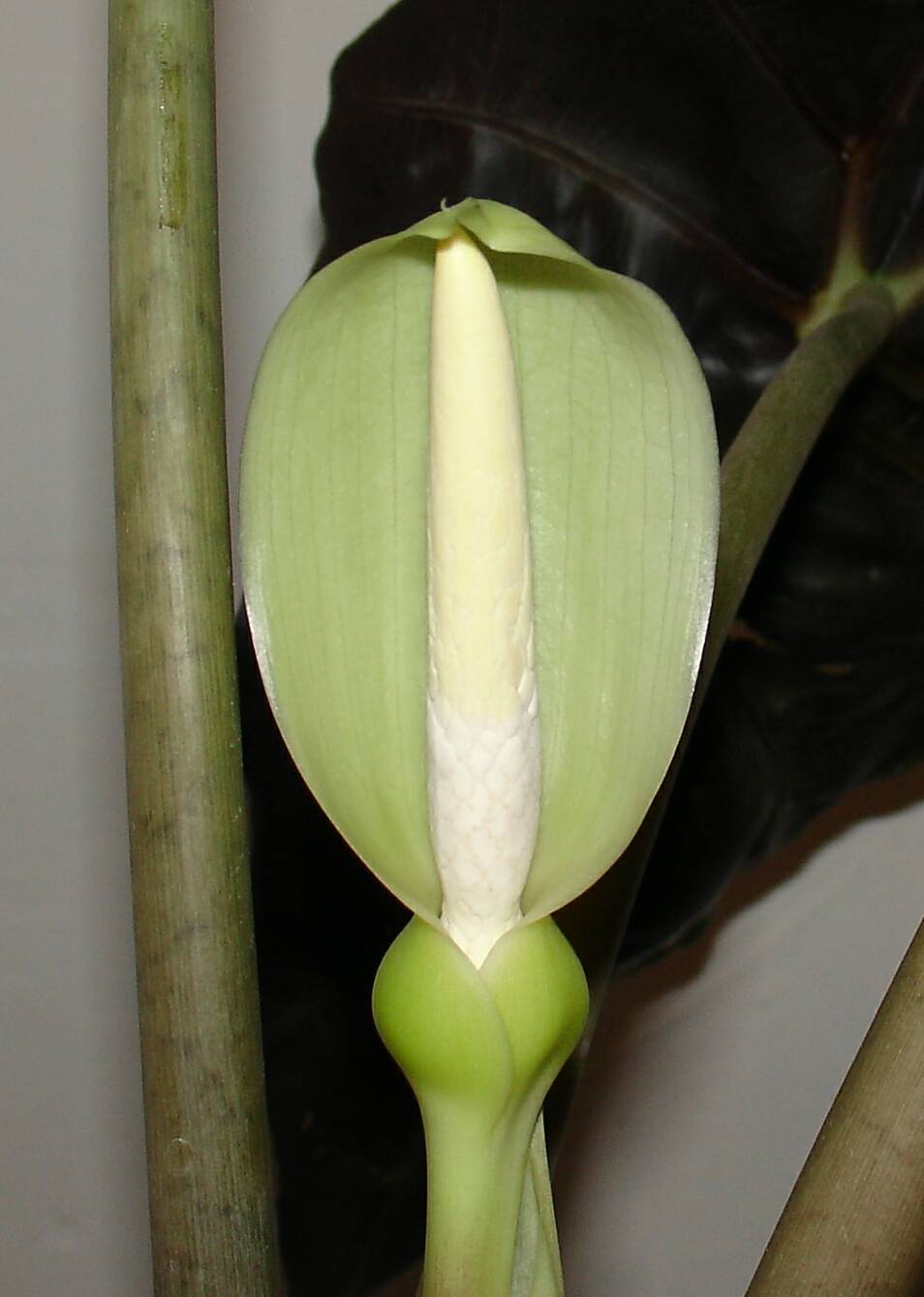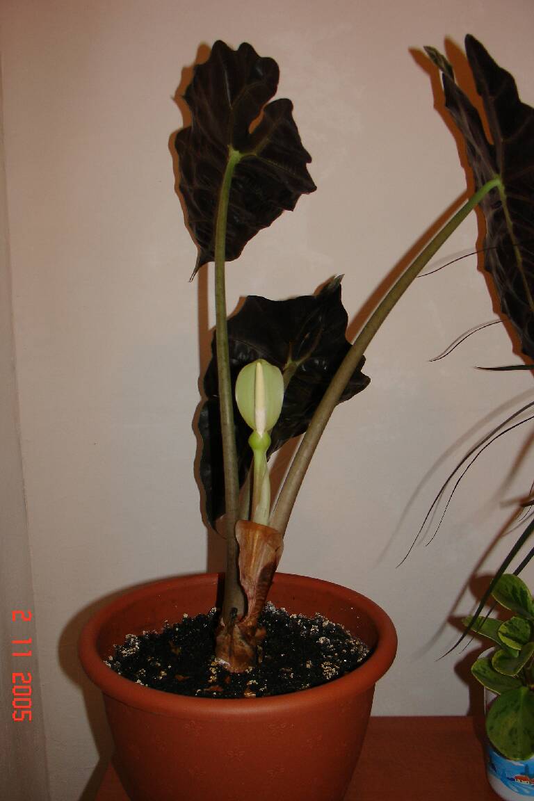 Вот прикупил када-то в МЕТРО на распродаже чахлыка с одним полусухим листиком, а он прижился, стал разростаЦЦа и даже вопреки всем умным книжкам зацвел (по книжкам алаказия у нас не цветет или очень редко). Вот пару фоток: