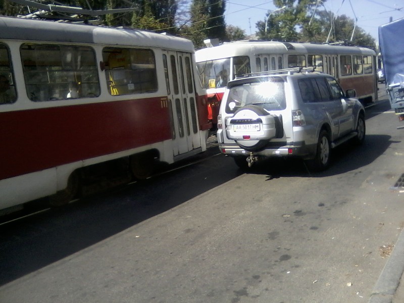 А ситуация такая: выходили с трамвая на Спартаке. я вначале вынесла коляску, и слава Ему, что не детей первых выпустила, а то мадам за рулем уверенно продолжала двигаться в заданном направлении - вижу цель - не вижу препятствий. а когда ей сделали замечание, то у нее даже не пошевелился мускул на лице. а если бы побежали дети?