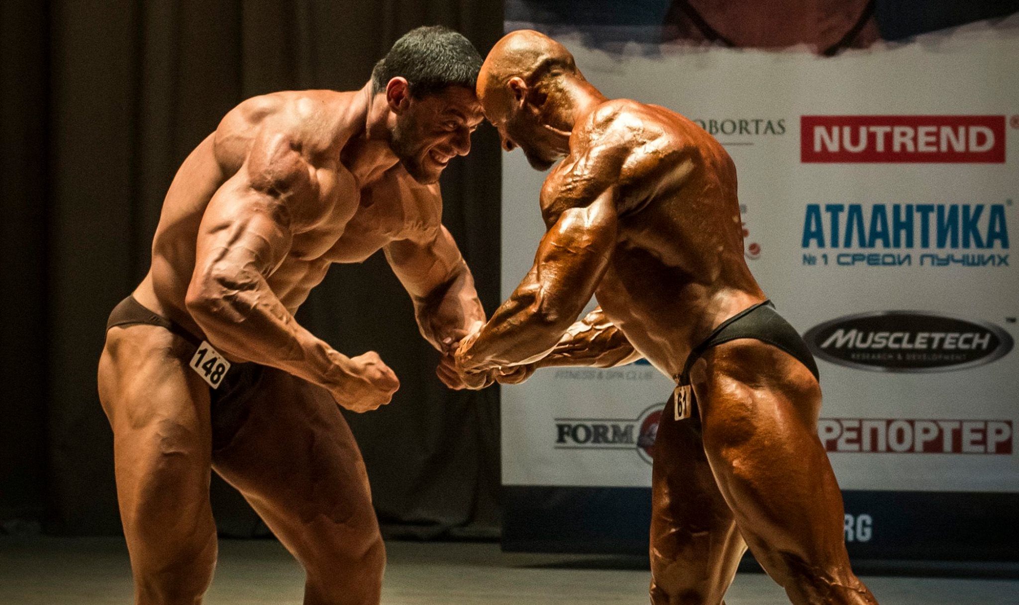 Верно замечено. И к этому пику спортсмены идут достаточно долго и упорно. Немаловажен и грим - особенно, в процессе собственно соревнования. Плюс, фон на плакате подобран - чтобы смотрелось.