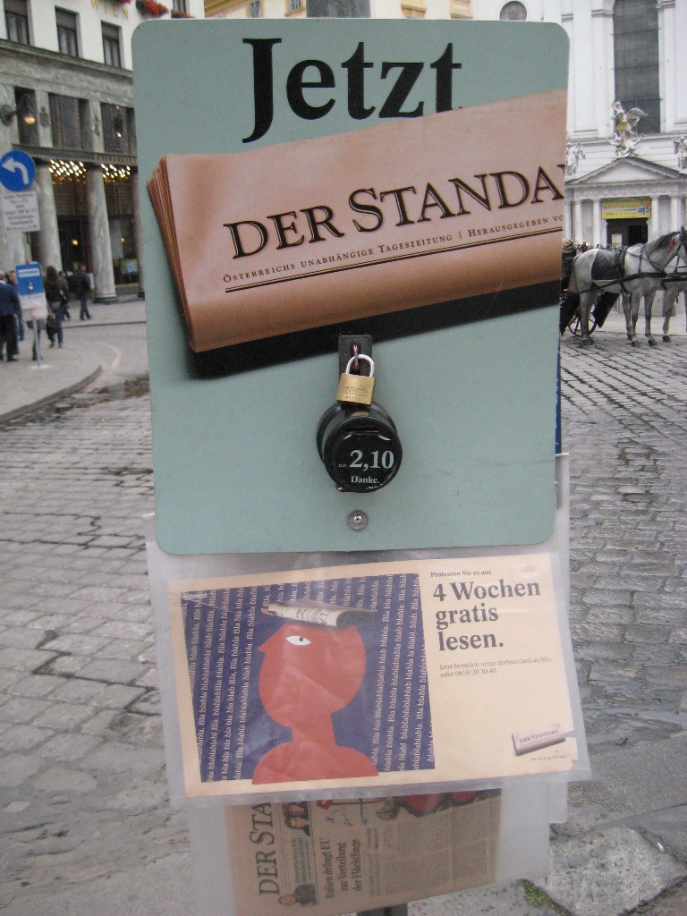 "Автомат" по продаже газет Для понимания: газета достается свободно, предполагается, что деньги кидаются в "автомат" самосознательными гражданами.