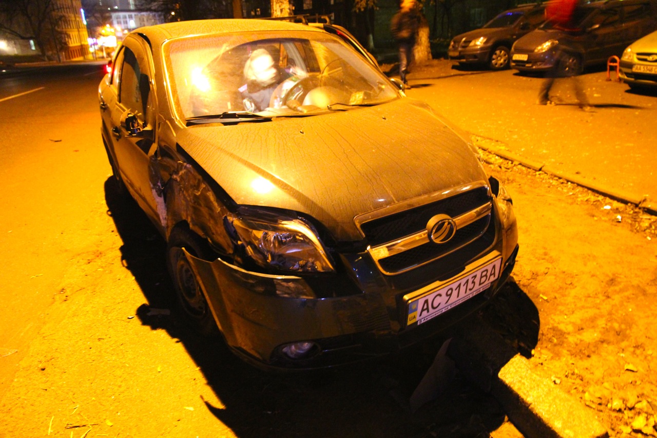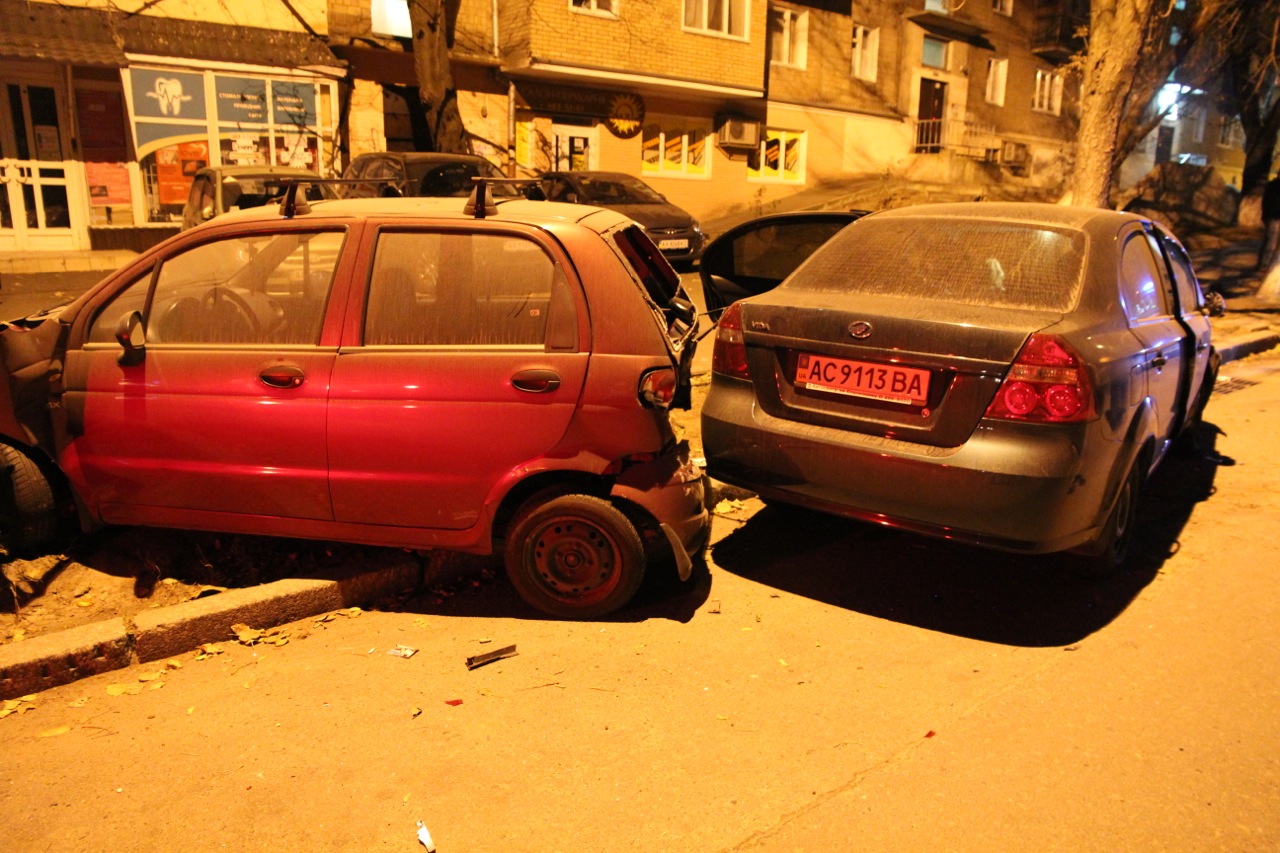 Весь этот ахтунг был произведен ЗаЗ Вида, прикладываю ночные фото как это было. Так как я выбежал только через 5 минут после аварии, то не видел кто находился за рулем Виды, возле машины стояло 3 или 4 пьяных в дым тела. Позже выяснилось что в машине находился один, он же ее хозяин, остальные просто свидетели которые подошли через пару минут и тоже не видели кто был за рулем вида. По утверждению пьяного владельца виды за рулем был его сосед, имя которого он не знает, и он тут же сбежал с места происшествия. При этом сам владелец(якобы пассажир) вышел через водительскую дверь, это видели и он сам это объяснил тем что не мог открыть пассажирскую, хотя пассажирская дверь нормально открывалась.