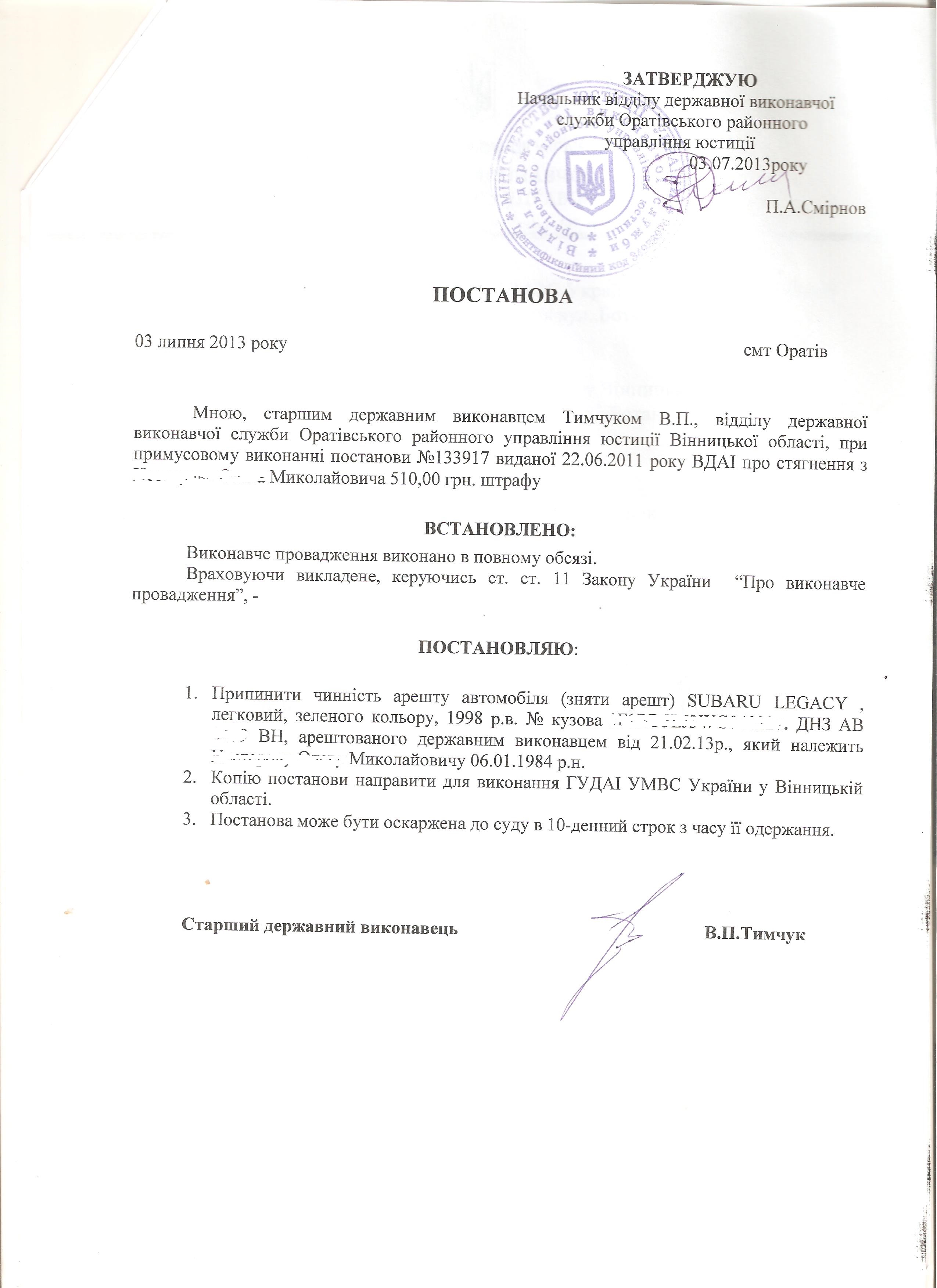 ТС, ты что ребенок? Три страницы текста почти не о чем. Да в чем проблема узнать ГИС, которая открыла исполнительное производство, в чем проблема узнать реквизиты куда нужно платить штрафы и сбор за исполнительное? Всё есть в свободном доступе в интернете. Я так понимаю примерная дата штрафа известна, место проживания нарушителя (место рег. авто) на тот момент известно. Нужна просто для начала хоть трубку в руки взять и набрать в соответствующие органы, например в ГИС по месту, где штраф вклепали. Если сам такой беспомощный, то позвони в самую захудалую юр. консультацию в том Чернигове они тебе за 200 грн. (думаю столько услуги будут стоить) все пробьют и, возможно, даже без доверенности всё сделают что нужно, чтобы получить нужные доки и забрать авто. Тема на троллинг больше похожа. Лично сам по электронной почте отправлял в ГИС квитанции, чтобы они закрыли производство, потому что не было ни возможности ни желания к ним ехать и всё гуд. Нужно просто меньше разглагольствовать и ныть, а больше делать.