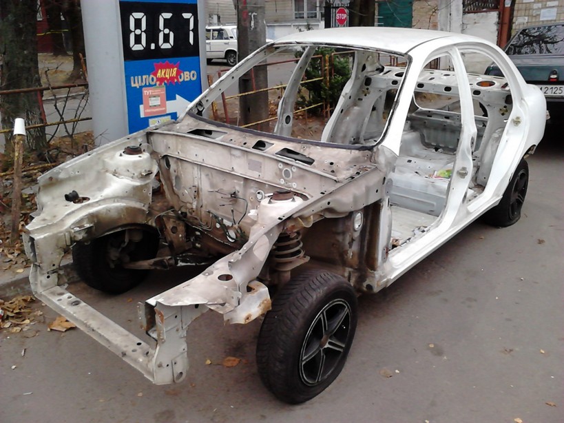 Коренной лист весь живой, нигде нет ни вмятин, ни гнили (исключение немного рыжей в районе пер. пассажира). Разобрано все до последнего винтика- остались только тормозные трубки и петли замков.