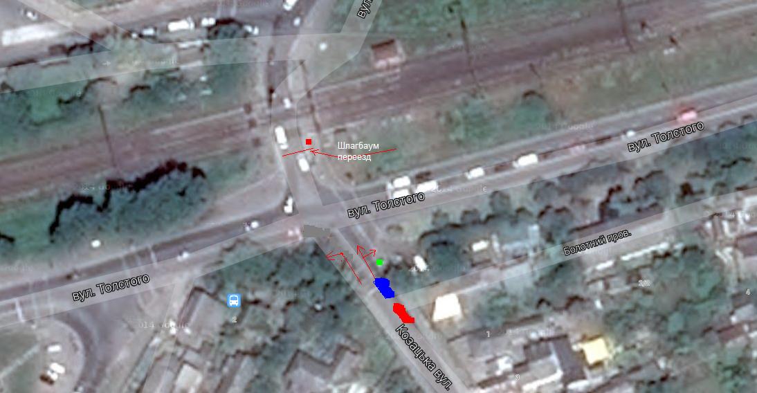 Вопрос к уважаемому all'у Выезд на перекресток, за которым жд переезд, имеет две полосы: одна только налево, вторая прямо и направо. На перекрестке есть светофор. Вопрос в чем: перед перекрестком стоит светофор, сразу за перекрестком переезд со шлагбаумом. На прикрепленной картинке синей машине надо прямо через переезд, а красной направо. Если переезд закрыт, а на светофоре горит зеленый свет, как поступать синей машине? Выехать на перекресток, чтоб пропустить красную машину, если нет уверенности, что покинешь его вовремя, нельзя. Как по правилам поступить синей машине?