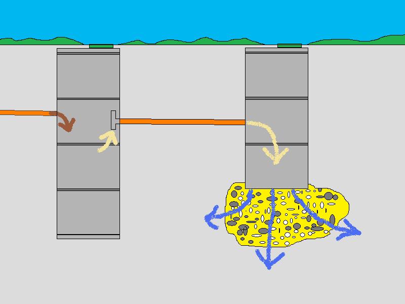 Я делал так: копалась яма глубиной около 2 м, размерами 3 * 15 м примерно, на дне возле одного края заливалась горизонтальная армированная плита толщиной 15 см, размерами 3*6 м, на нее ставились рядом 2 таких кольца http://budindustriya.kiev.ua/spip.php?article321, внутри колец гидроизолировалось все, и делалась система переливовов с тройниками (из первого кольца во второе и из второго уровнем пониже, чем перелив из первой - выход в дренаж). С другой стороны ямы, там, где выход из второго кольца, высыпал 30 тонн щебня крупной фракции, чтобы верх щебня был чуть выше выхода из этого второго кольца. На выходе труба делится на 3 ветки, от которых отходит 3 куска дренажной трубы, каждой кусок около 9 м. Труба укладывается в щебень, верх трубы чуть ниже его верхнего края, с небольшим уклоном от септика, на концах труб вертикально ставятся трубы диаметром 50 мм с грибками сверху для вентиляции, + все участки труб соединены поверх септиков кусками трубы диаметром 110 мм - тоже для вентиляции. Понятно, что есть и фановая труба в доме. Для таких колец обязательно нужен кран, т.к. манипулятор с себя с трудом только сгрузил кольца, в яму не мог поставить, заваливался.