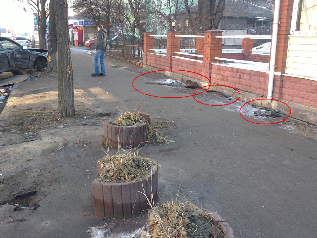 И что не так? На 19:00 уже не было никаких следов, кроме "пеньков" от срезанных стоек забора, ободранного дерева и обломка цветочного "горшка". Да, не быстро. Но зато очень чисто. Я б даже сказал, что нас кто-то читает.