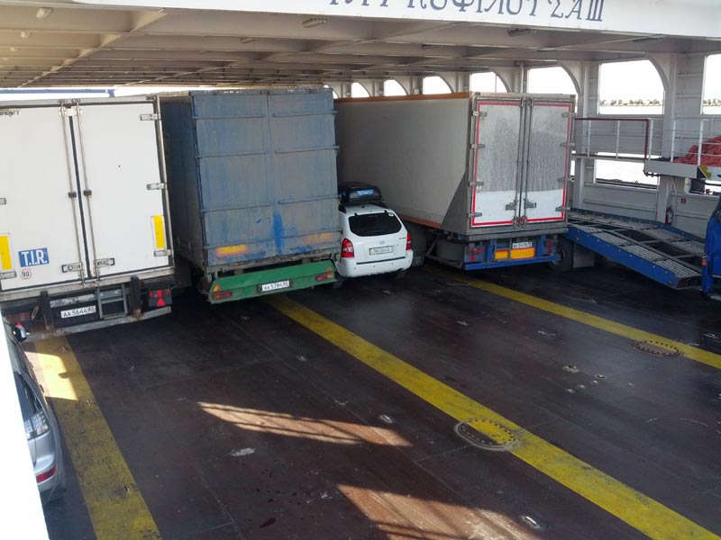 Про паром, кстати: - очереди нет совсем. Ходят 3 штуки. Легковушек десяток-другой брали - всех, кто был, и фурами добивали. Т.е. пассажиропоток жидковатенький... Но очереди на паром правительство, или еще кто-то реально победили! Правда штормовой ветер указом не отменили и паромы иногда не ходят. За день до поездки как раз почти сутки не ходили. И на пароме среди фур, становится ясно, какая маааленькая машинка Тушкан...