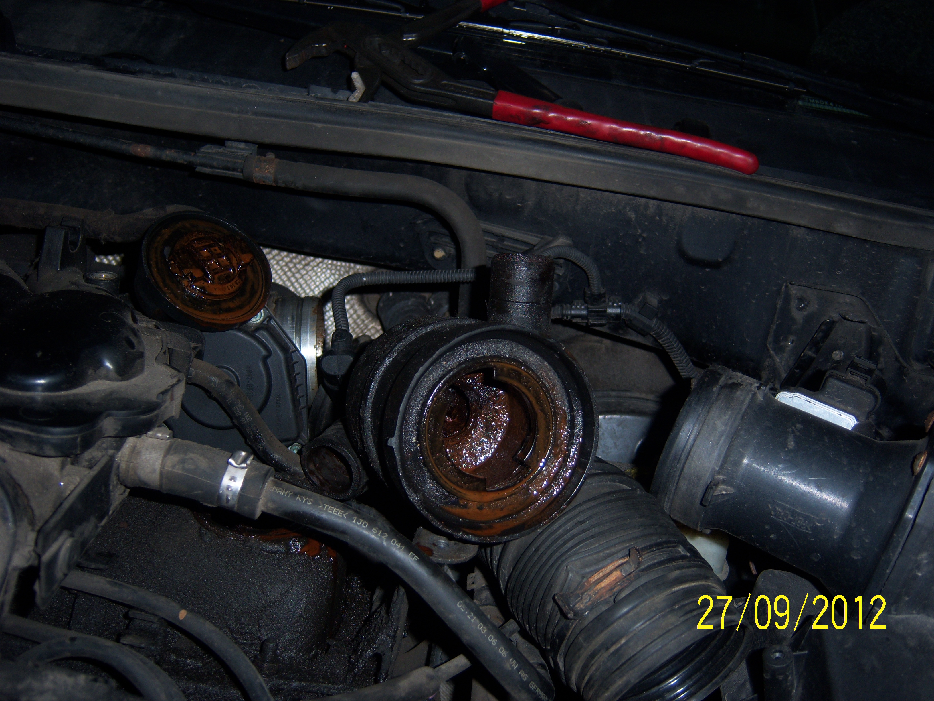Это ж 8-клапанный 1.6 типа BSF. У него такая характерная особенность, что под крышкой заливной горловины и самой горловине скапливается конденсат, который потом превращается в грязную жижу. Алюминиевый мотор быстро нагревается, а крышка пластиковая крышка быстро остывает. И такая гадость появляется за несколько тысяч, особенно зимой быстро скапливается