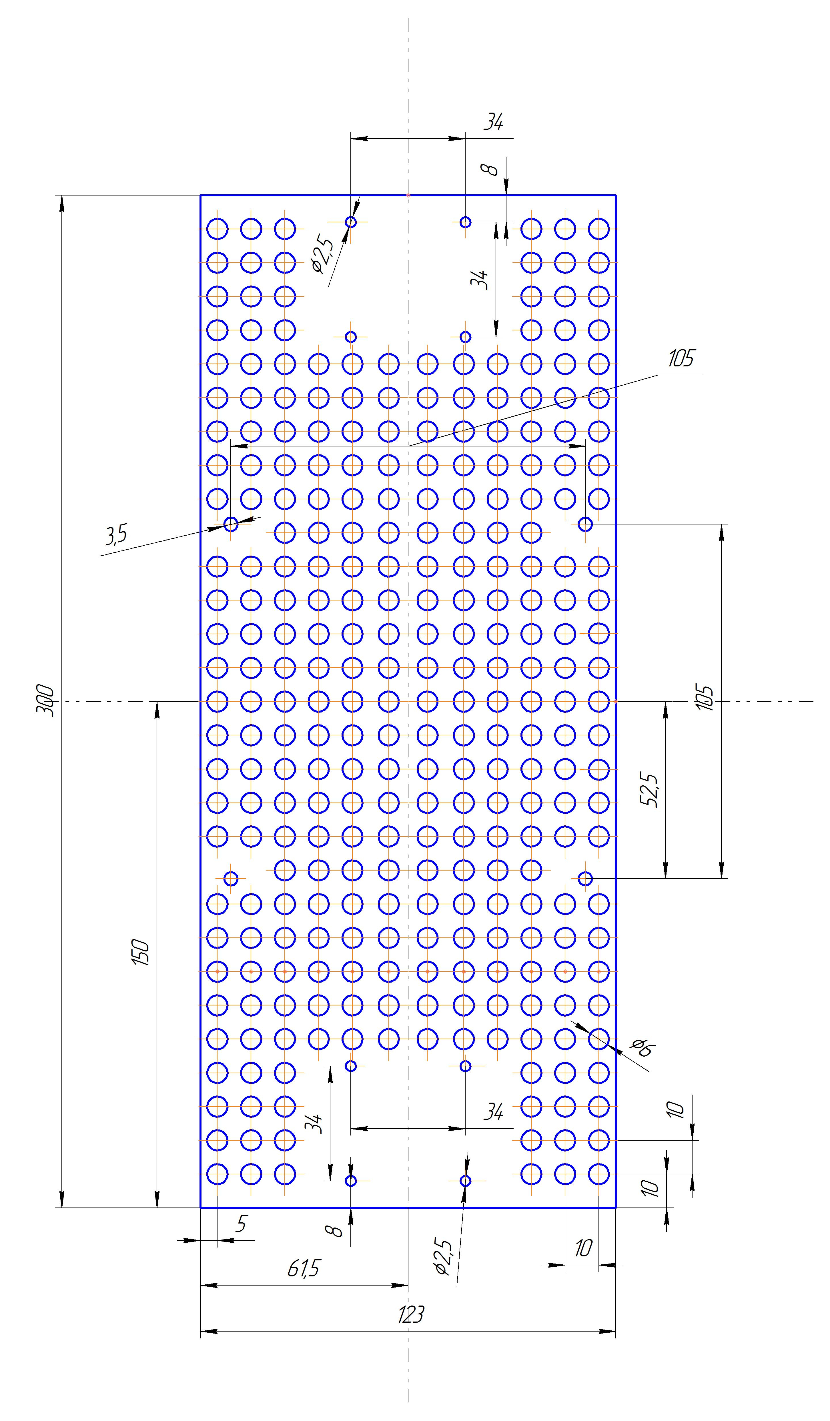 Есть два куска профиля ALPR-300X123, необходимо насверлить отверстий как на чертеже .