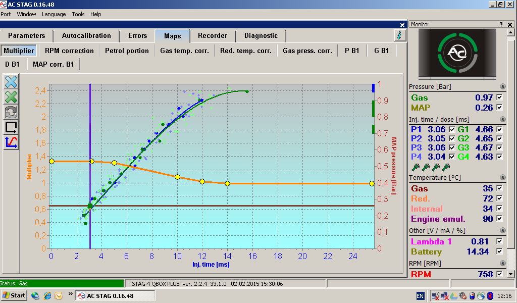 Справедливости ради, она у тебя зеленая и в настройках надо зеленую выставлять. С давкой 1.2, лучше будет работать. Низкий офсет, для Ханы, не проблема. У меня ваше впрыск газ, меньше бензинового вышел и ничо.