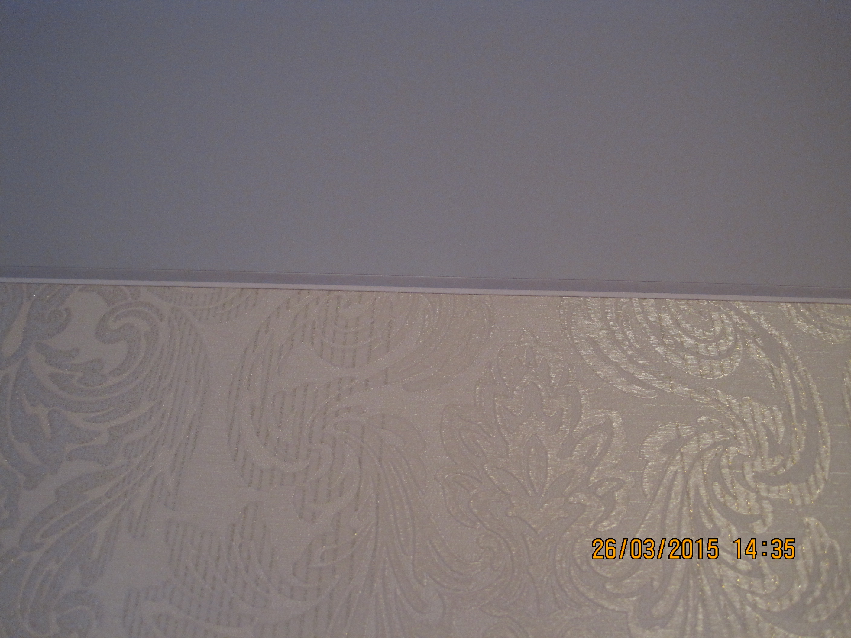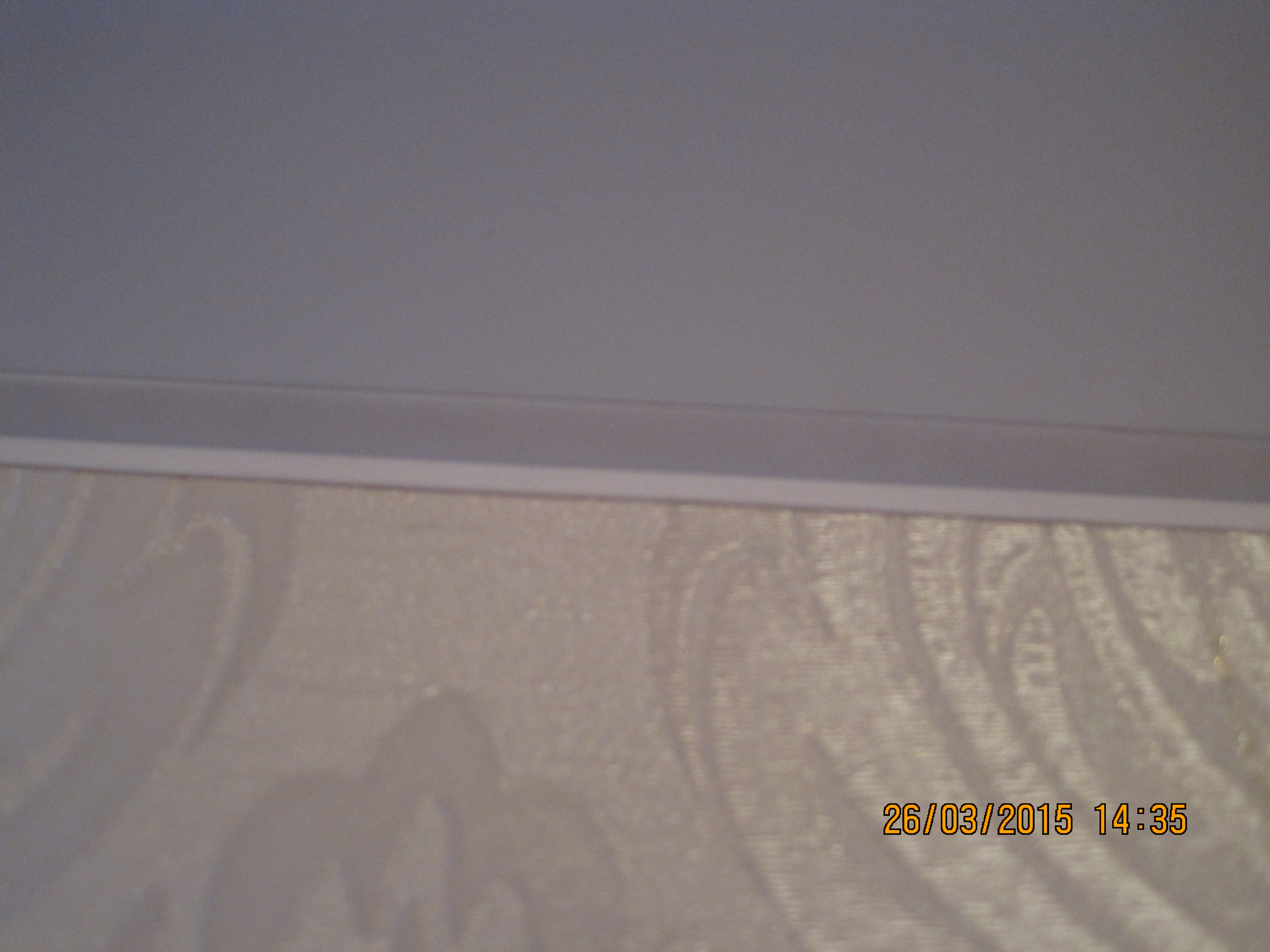 а зачем вы такие клеили багеты и так мучались, ведь есть специальные маленькие вставки резиновые которые просто вставляются в щель между натяжным и стеной в саму планку так сказать
