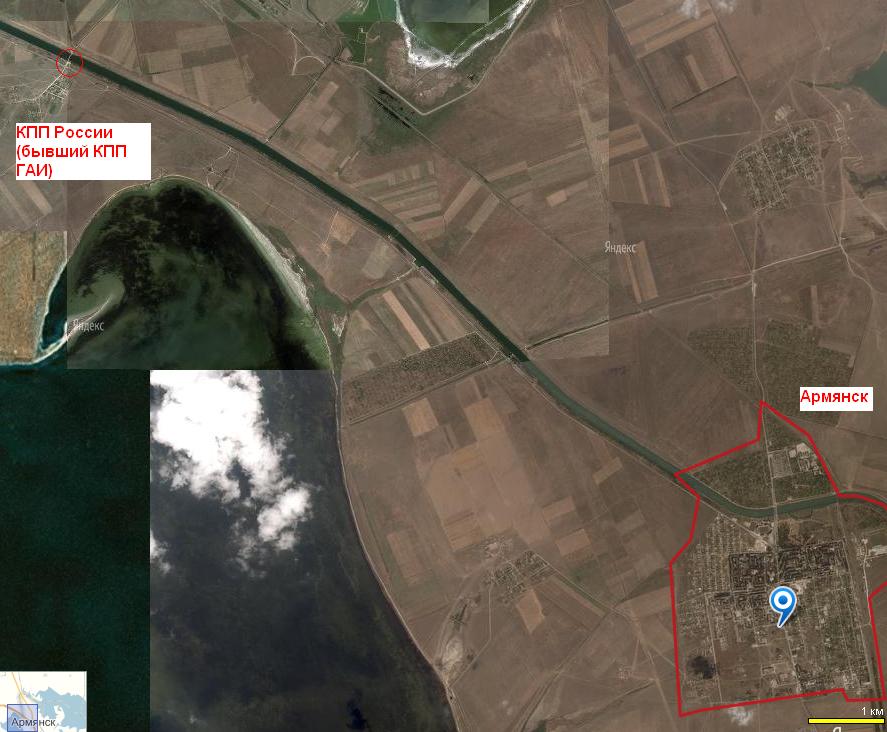 ПП Каланчак, т. к. это ближайший населённый пункт на территории Украины. г. Армянск уже на захваченной Рашкой территории.