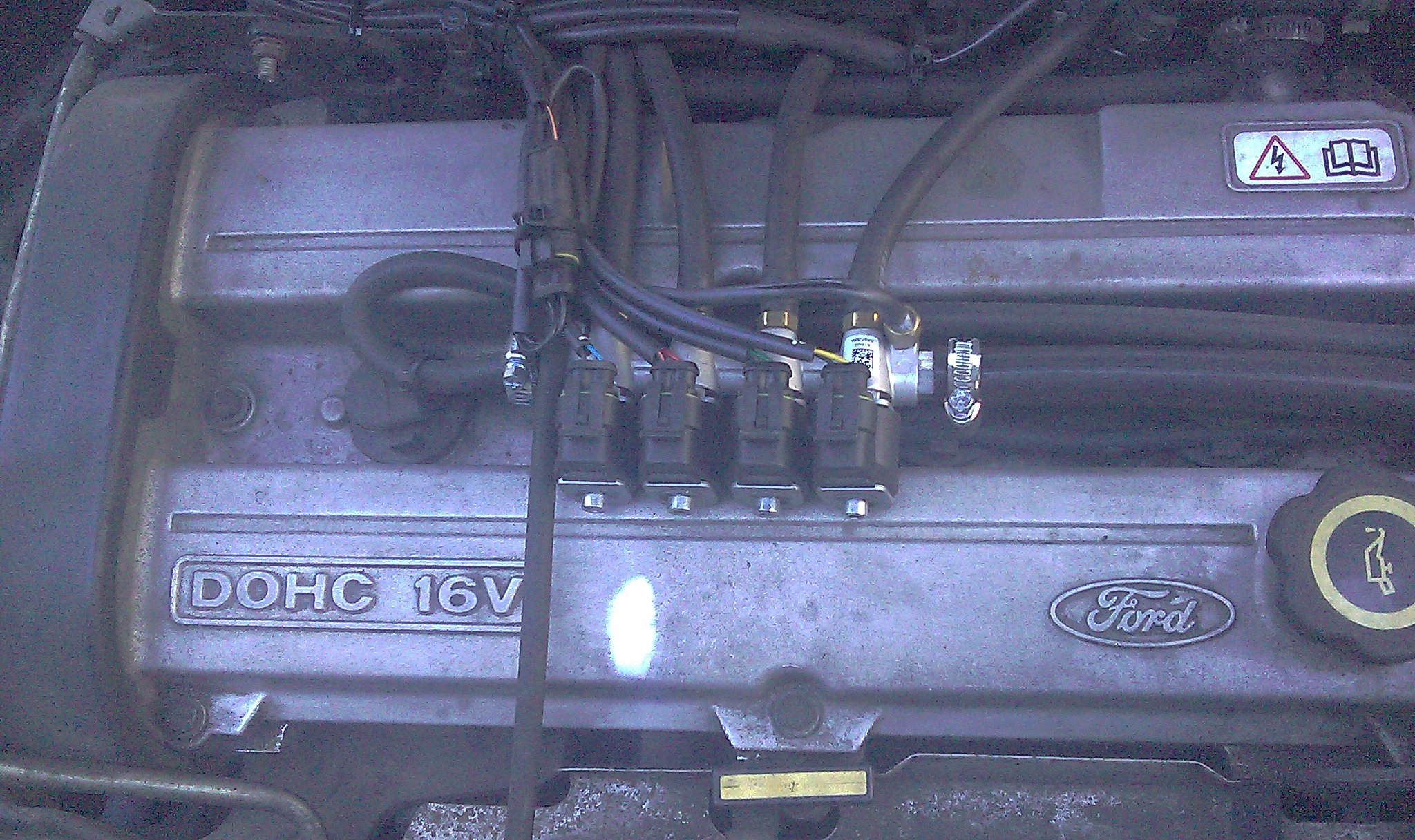 нашел старое фото своего мотора. Клапанную крышку снимал для замены ГРМ. Кстати на заднем плане тюнинговые провода OBX, позволяют рабоать на газу с зазорам в свечах 1,3мм(родные платиновые свечи Моторкрафт идут именно с этим зазором под этот мотор) штатные провода моторкрафт прошивало на раз.