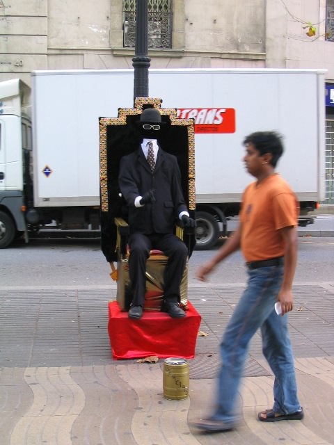 А это знаменитая улица Ла Рамбла, главная пешеходно-прогулочная достопримечательность Барселоны со всем типичным туристическим Китчем, дороговатыми ресторанами с посредственной едой и прочими аттракционами