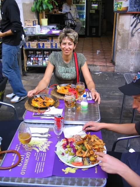 А вот в таких ресторанчиках, как этот на знаменитом рынке Барселоны и питаются аборигены, причем по совершенно приемлимым ценам (даже дешевле чем на на нашем Будапештском центральном рынке). Здесь мы и отведали знаменитую Паэййу. Это такое блюдо с курицей, рисом креветками итд. Сразу могу сказать, что было очень вкусно, но моя жена готовит ее абсолютно не хуже. Единственная разница так это то, что конечно вкус свежевыловленных(в Барсе) и наглухозамороженных (в Будике) креветок существенно отличается в пользу Барселонских. Зато вкус курицы и риса, как по мне, made by моя жена вкуснее, поэтому Паэййа по Будапештски и Паэййа по Валенсиански = ничья!