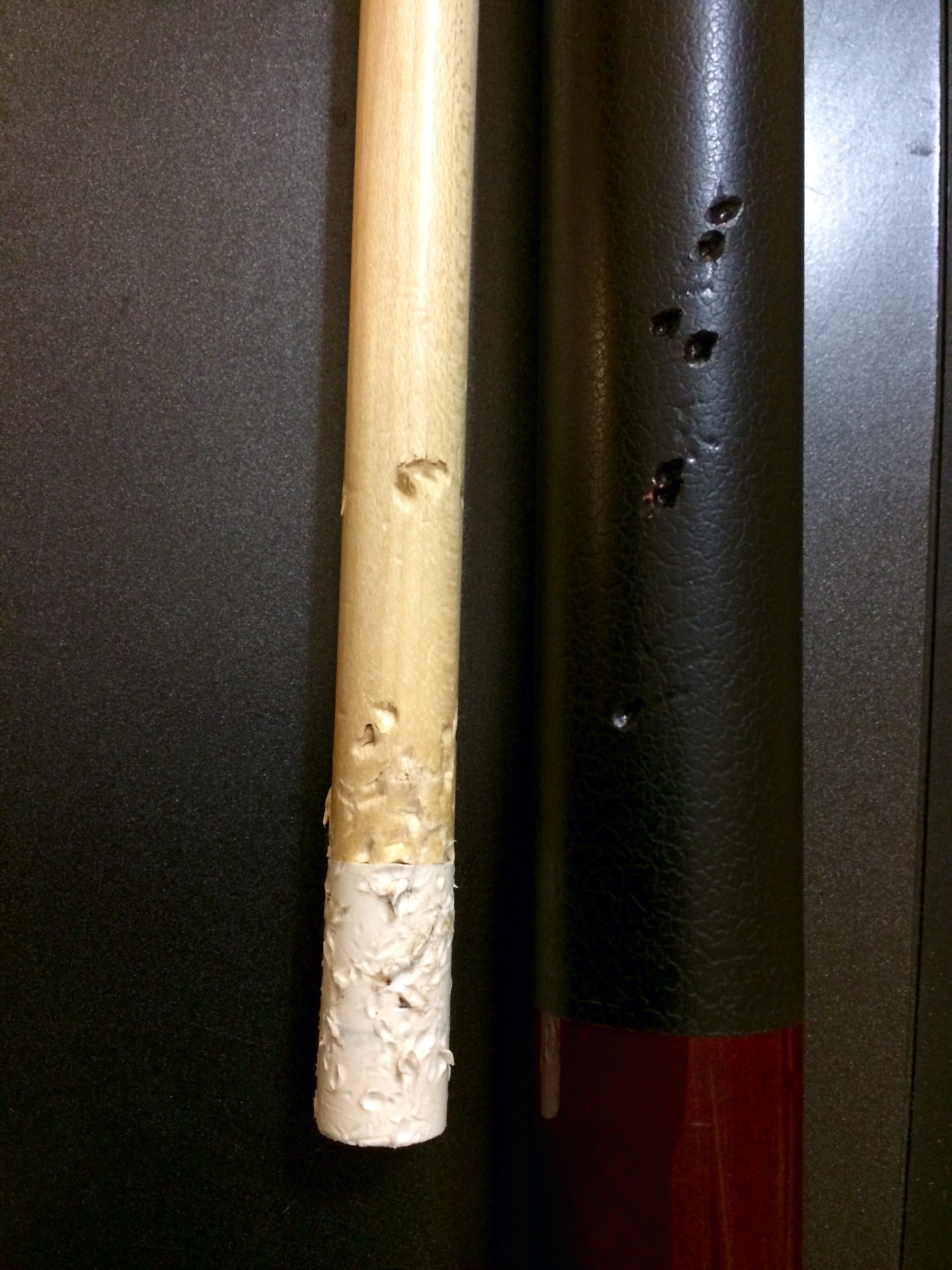 Фигасе. Даже не знаю, что можно сделать. С комелем все понятно, но перо как не делай скользить не будет. ИМХО. Можно попытаться зашпаклевить и вскрыть воском, но воск сотрется через время. Сегодня буду катать - спрошу у ребят в клубе кто таким ( и возьмутся ли) занимается. В понедельник отпишусь. ИМХО - ремонт не дешевле кия будет. Кий - самый простой. Честно, я б не чинил - оставил бы как память и купил бы другой.