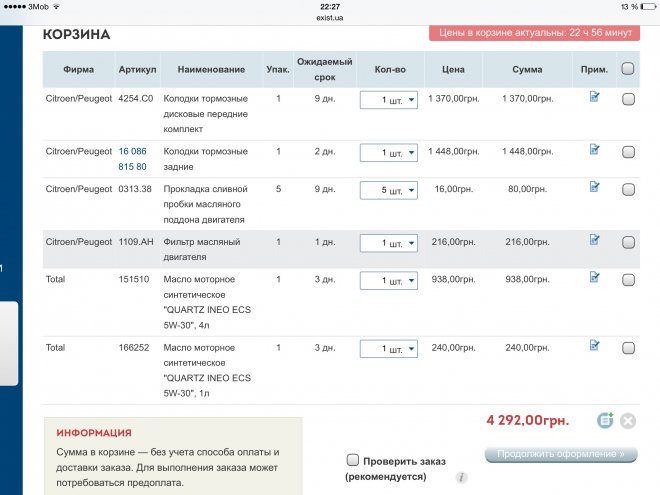 На экзисте сумма по всем позициям получилась 4250 грн и ожидание поставки до 9 дней. На оф. сервисе все вместе с работой 4500 грн. как так???