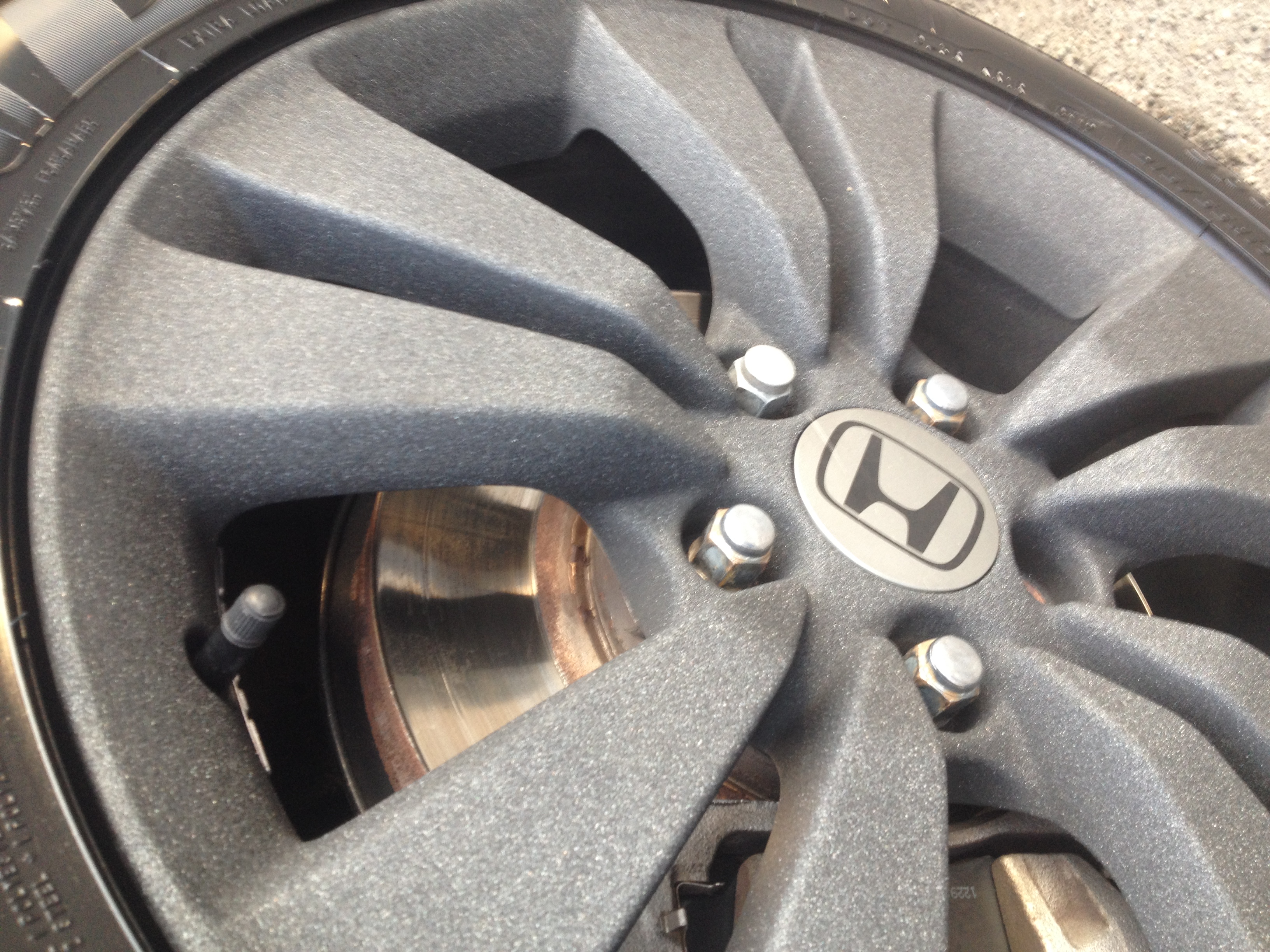 Заезжала к нам на мойку Хонда с весьма оригинальными дисками. На ощупь шершавое, напоминает крупнозернистую наждачку. Клиент говорит что влетел в яму, порвал в клочья шину, а диску хоть бы что! Еще говорит что купил машину уже с этими дисками, что это за покрытие не знает. Что это за покрытие?