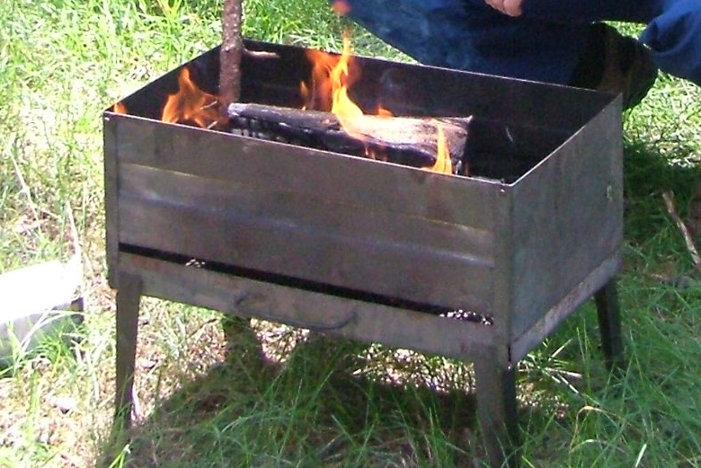 У меня такой, как на фото - очень удобный и практичный, легко собирается и разбирается, название не знаю. В сложенном виде подобие дипломата, есть ручка и чехол. Пользуюсь уже более 10 лет и у соседа такой же. Покупался на "Бухаре" (рыбацкий рынок возле м.Днепр). Один раз пробовал собрать подобный раскладной мангал у друга - просто издевательство (постоянно надо было ловить пазы стоек и стенок, которые выпадали и конструкция рушилась)