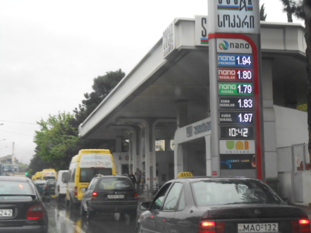 Бензин примерно наша цена (фото с заправки в Тбилиси - 1-я, 2-я позиции - 95-й), учитывая, что 1 лари - около 10 грн.