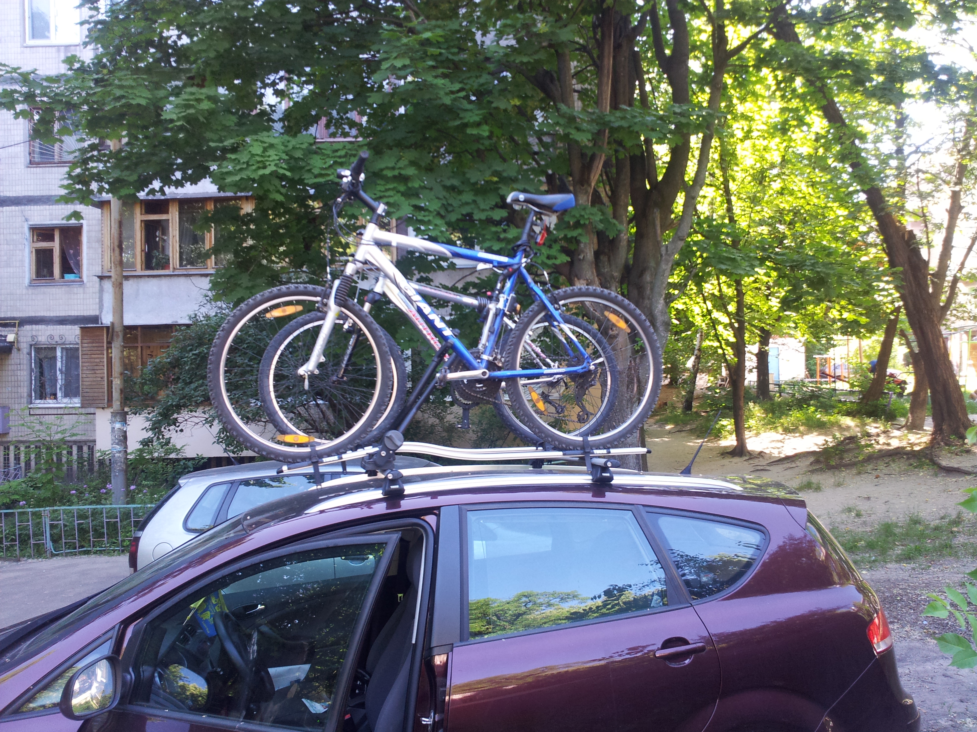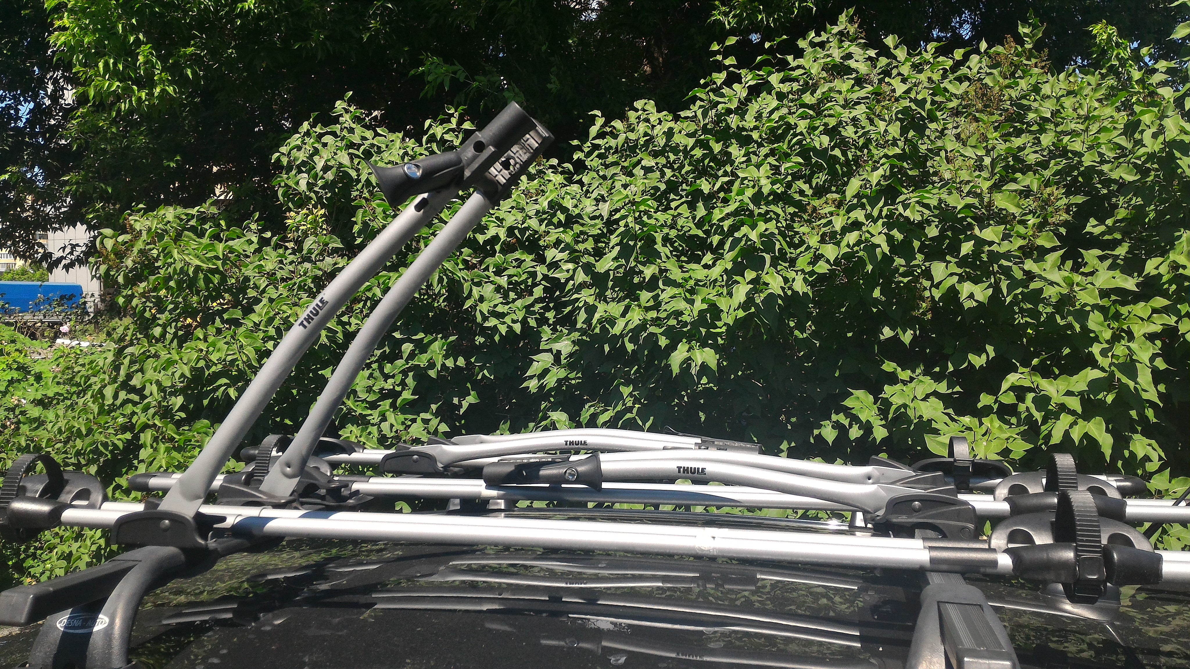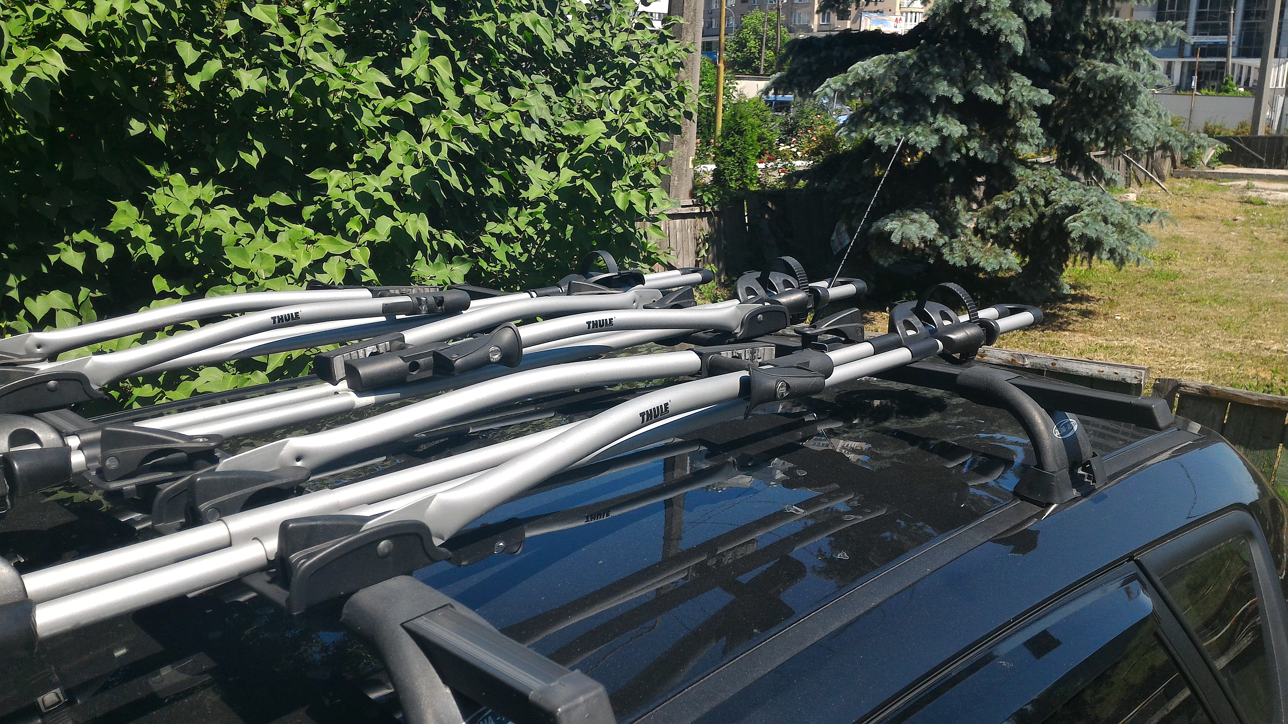 У меня туле крепления и их же поперечины, аэродинамические, внутрь поперечины вставляется т-образный коннектор http://bagazhnik.ua/krepleniya-dlya-velo...1-TH-889-1.html, защелкивается и все. Два велосипеда креплю пару минут буквально
