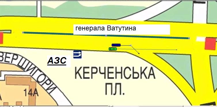 Недели две назад попал в аварийную ситуацию (см. рисунок - я на зеленой машине). Вкратце было так - еду по Ватутина от Московского моста, подъезжаю к повороту на Перова , еду в первой полосе прямо , километров 60 в час и никого не трогаю . Метрах в пятнадцати впереди меня по второй полосе едет старенький синий мерседес . Вдруг этот дебил резко бьет по гальмам , включает сигнал(хоть бы заранее включил!!!) и начинает вписываться передо мной в поворот на рынок Перова. Вижу борт мерседеса , перекошенное лицо фашистского аса, тоже бью по гальмам,удается избежать столкновения . Адреналин, маты , обфакивание друг друга сиренами и проч. Тогда мне показалось, что я был прав на 100%, маневр был полной неожиданностью и у меня не было никаких оснований предвидеть глюки в чьей-то башке. Продолжение истории вчера - еду той же дорогой и обращаю внимание(внимательнее надо быть товарисчи) на неприметный такой знак 5.21.1 на выезде с заправки в 50 метрах от поворота и начинаю понимать логику того идиота. Оно видимо забыло (или забило) про п. 10.1 10.3 10.4 ПДД. И посчитало - что раз у него мерседес, а у меня "полоса исчезает" - то преимущество у него. Непонятно кто этот знак там влепил и к какому участку трассы он имееет отношение?Зачем он там если ширина проезжей части не меняется? Может дальше уже за поворотом ,ближе к светофору число полос уменьшается на одну шт.? Как вообще могут быть полосы когда разметки не видно ? Хотя ..они как суслик из фильма ДМБ ты его не видишь а он там есть