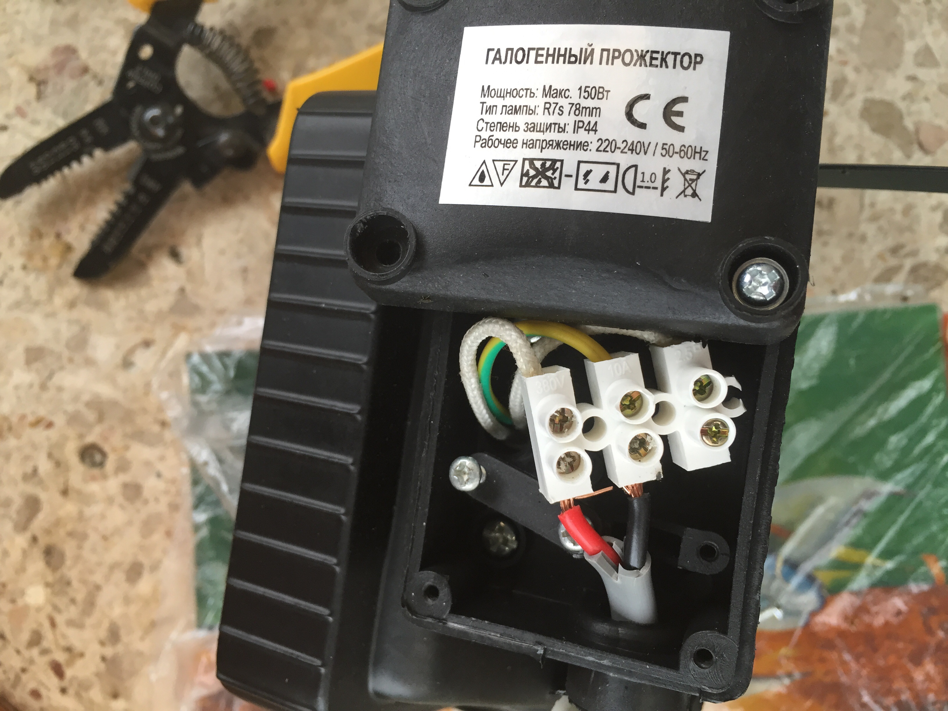 ох ты ж ешки-матрешки, повезло что на средней клемме скорее ноль оказался, ты эта по аккуратней с такими подключениями питания, на корпус фонаря да еще експерементами под дождь желто-зеленый всегда заземление или корпус.