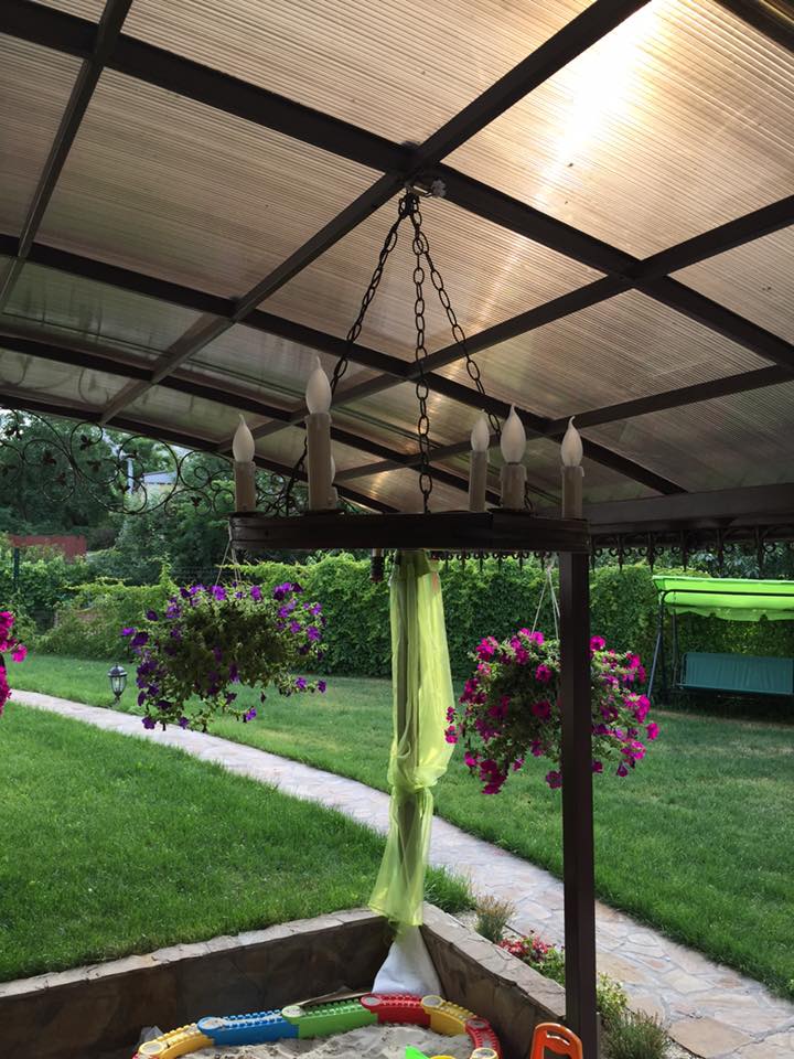 фото выше. Домик под электрику сделан. Там все подключения, розетки. Высота тоже видна. По колено где-то. В прошлом году впопыхах сделал, а-ля "сруб". Крышу по быстрому обтянул залакированной нождачкой. Под атмосферными осадками таки скоро придет в негодность. Нужно что-то более обстоятельное и крепкое.