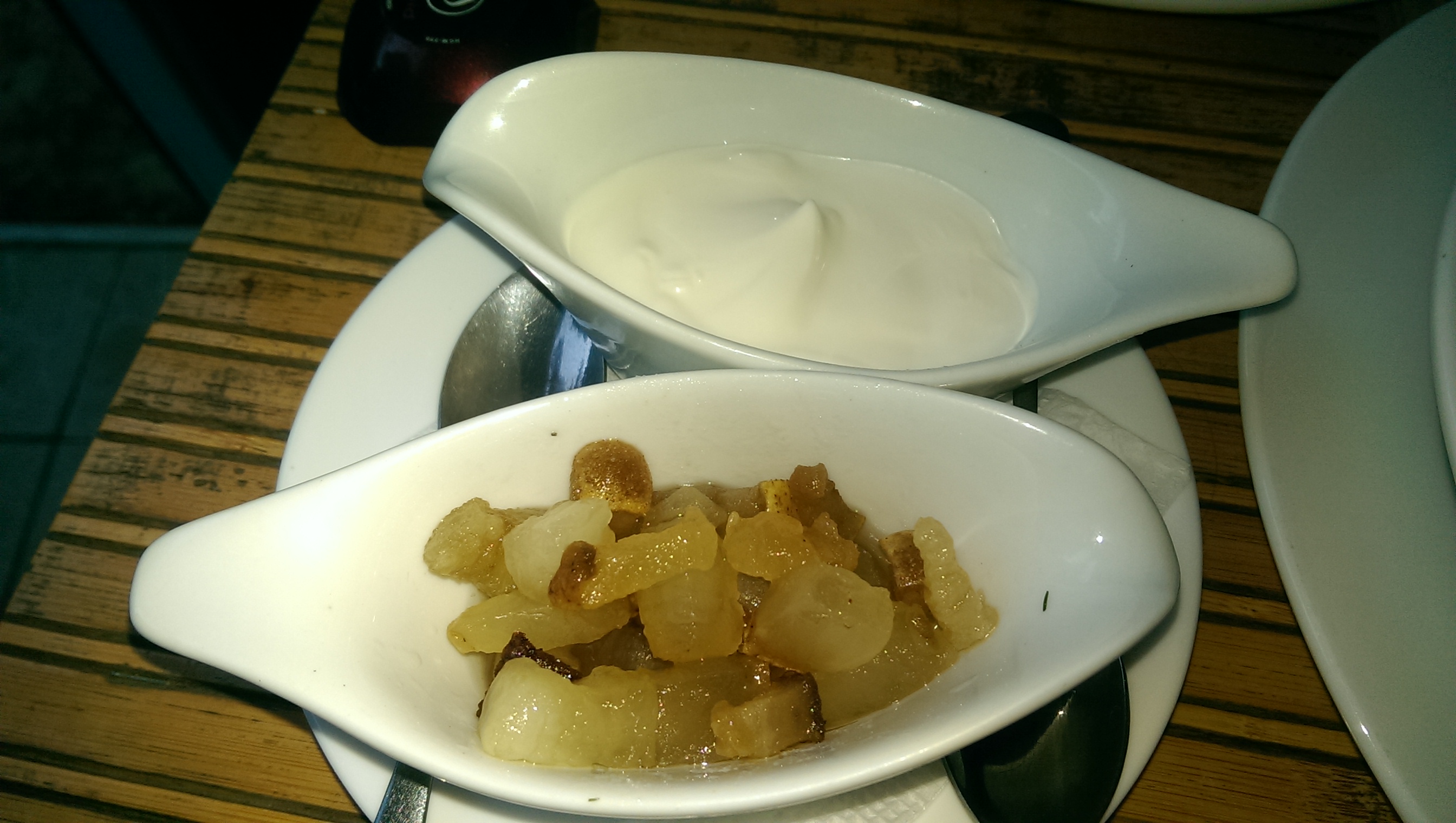 Обслуживание вообще поразило. Ехала туда такая воодушевленная, а в итоге после того, как изучили меню, ждали ждали, ждааааали ждааааали, выходили с беседки выглядывали, искали кнопку, просили найти официанта… Пришла, приняла заказ, и по просьбе принесла кнопку вызова. Принесла тарелку грязную. На просьбу поменять — стерла самостоятельно за углом пятно салфеткой