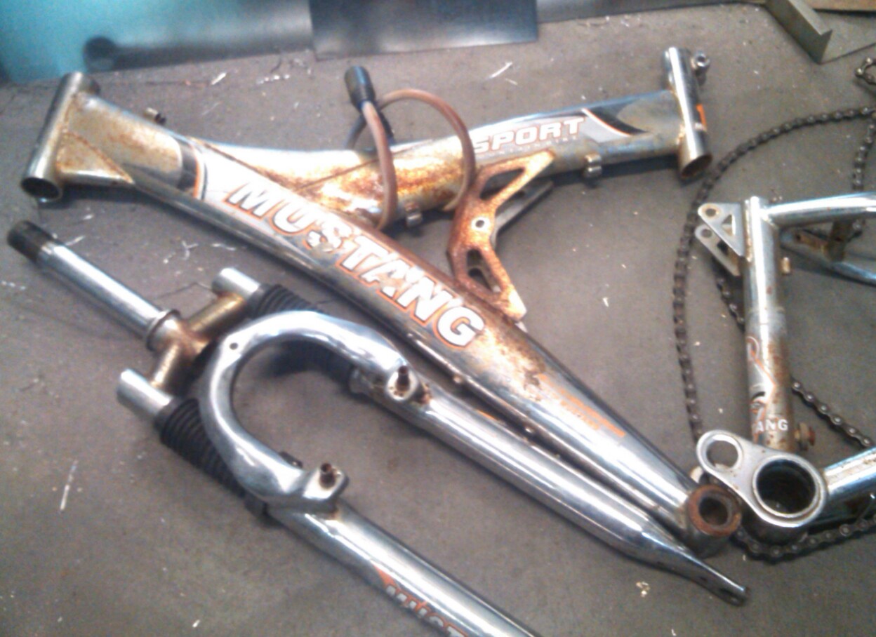 В этом году попался мне трупик. Он был как бы на ходу. но это громко сказано. куплен был за 100 грн По большому счету куплена была рама с вилкой, рулем и колесами. Все остальное в утиль. Идея была сделать черно белый вел. Поэтому все возможные хром детали были отвезены на гальванику и расхромированы. Конечно, некоторые детали остались в серебряном цвете, но их минимум. Направляющие вилки правда не хромировал, но заново покрыл никелем. Незнаю как будет ходить, время покажет. Рама была разобрана. попесочена и покрашена. Выточили втулку под задний вибрейк. (была отломана) заменена каретка, шатуны, новая цепь, новые манетки, колодки, тормозные ручки, резина. На заднюю перекидку были выточены новые втулки на ролики. Помыты и смазаны втулки. ну и собран. на данном этапе он уже на колесах. Но еще не выезжал. На фото он уже разобран. И то что получилось.